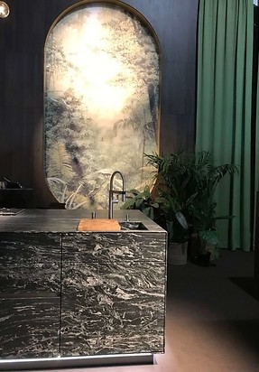 The first thing evident during this year’s Salone del Mobile was textiles. Textiles ruled the event. Soft, velvet and cosy materials on furniture, floors, walls and ceilings; more often than not with cool-to-the-touch stone or exotic wood species. The wood alone, shown in dark and almost rustic embodiments, was an undisputed surprise and a fresh trend which countered the extremely popular oak and ash woods. Most design concepts showcased in Milan clearly featured dark, moody and extremely refined themes. The bold and saturated colours on the walls provided an excellent canvas to expose the new and interesting, including powder rose, orange, sage green and tones of navy blue. The most surprising features at Salone del Mobile were the bathroom designs. Here, colours were not only showcased with tiles, but first and foremost by a departure from the standard white of whiteware and tapware. There was an increasing number of brands which offered washbasins, bathtubs, bowls and tapware in powdery pastels or with striking finish details in graphite. A veritable ‘cherry topping’ was the gleam and timeless elegance of gold and copper. Precious metals were enchantingly exposed like jewellery, the gloss and glow of which further refined the very smart indoor designs.